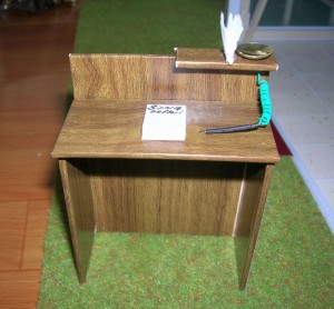 Kapı önünde üzerinde “Hoşgeldiniz” yazılı bir paspas. Dükkanın kapısı da normal kapı gibi açılabilmekte. Üzerinde yine ölçeğe uygun menteşeler kullandım. Bu menteşeler de bildiğimiz gözlük menteşeleri.